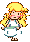 Aoi wears a light school-like uniform; her skin becomes paler and her hair is white-brown. She has a cookie on her head. Pressing Shift replaces Aoi's head with a cookie. | |