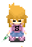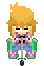 Sophia wears a uniform. Pressing Shift makes her react to her environment with a check-mark in a speech bubble (there is a 1/3 chance the check is replaced with a smiley face.)