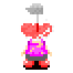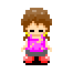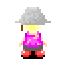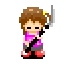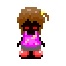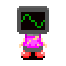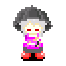 Shimitsuki has black skin and glowing red eyes. Pressing shift causes the screen to partially fill with white noise, including sound effects. When walking, black stripes and dots appear and disappear on the rest of Shimitsuki's sprite. | |