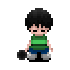 Shun wears a dog tag. Pressing Shift makes him examine it. |