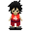 Shun holds a bass guitar. Pressing Shift makes him play it. |