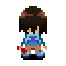 Katatsuki holds a triangle (musical instrument). Pressing Shift makes him play it. |