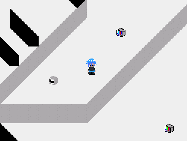 Go down this winding path, head right once you're on the other side then go up to another winding section. On the other side of the second winding section, go up, then right then take the first path going south. Go right once more then go up. The screen may flash black for a second, indicating that you've been teleported. Go up and enter the door. Interact with the moving stick figure on the other side of the room to get the effect.