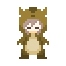 Suzutsuki wears a dinosaur costume which makes her walk faster in the land and slower in the water. Pressing A makes her howl.