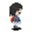 Funetsuki wears a backpack and her hair is shorter. | |