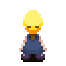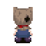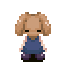 Usotsuki wears a purple scarf. Pressing SHIFT will turn the scarf into a hooded cloak held together with a blue flower pin. | |