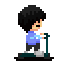 Nagatsuki rides a kickboard/kick scooter that doubles his speed. |